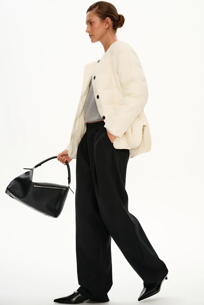Широкие брюки со средней посадкой выполнены из мягкого хлопка с тенселом. Складки по передней части хорошо корректируют зону живота, а резинка по задней половинке обеспечивает удобную посадку. Сочетание классического кроя и расслабленного материала делает эти брюки идеальными для повседневных образов, когда важно оставаться собранным, но не хочется жертвовать комфортом.
