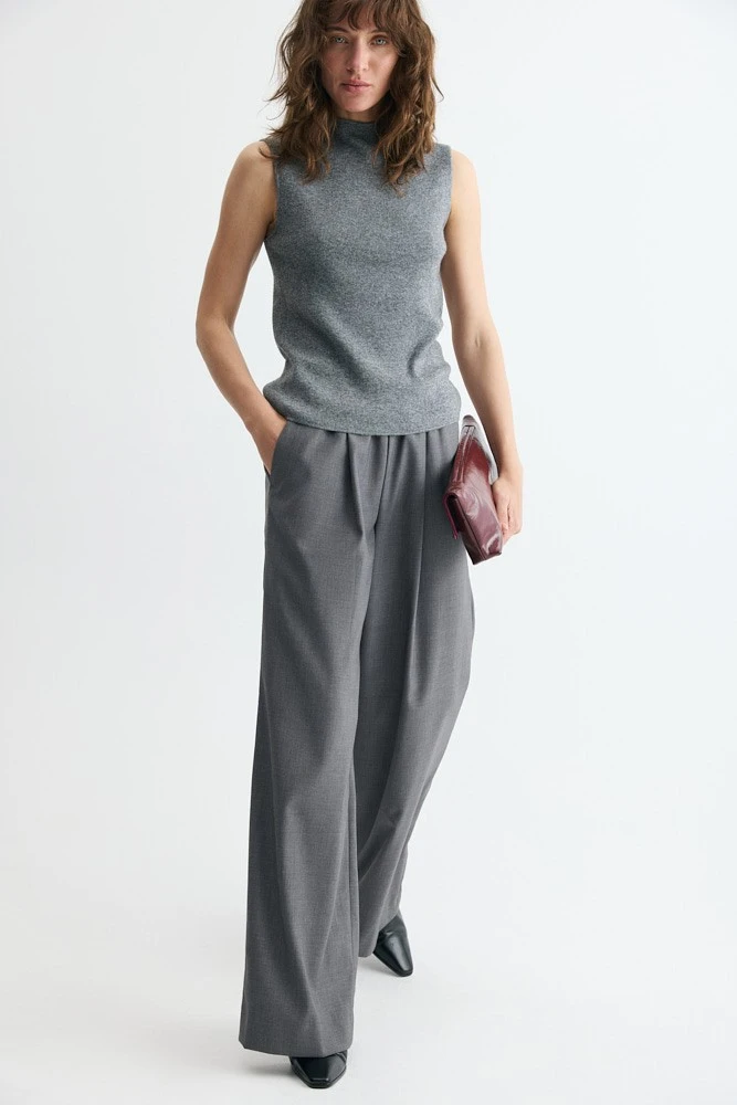 Любимая модель широких брюк с поясом на мягкой резинке. Идеально сочетаются как со строгими, так и с более расслабленными комплектами.