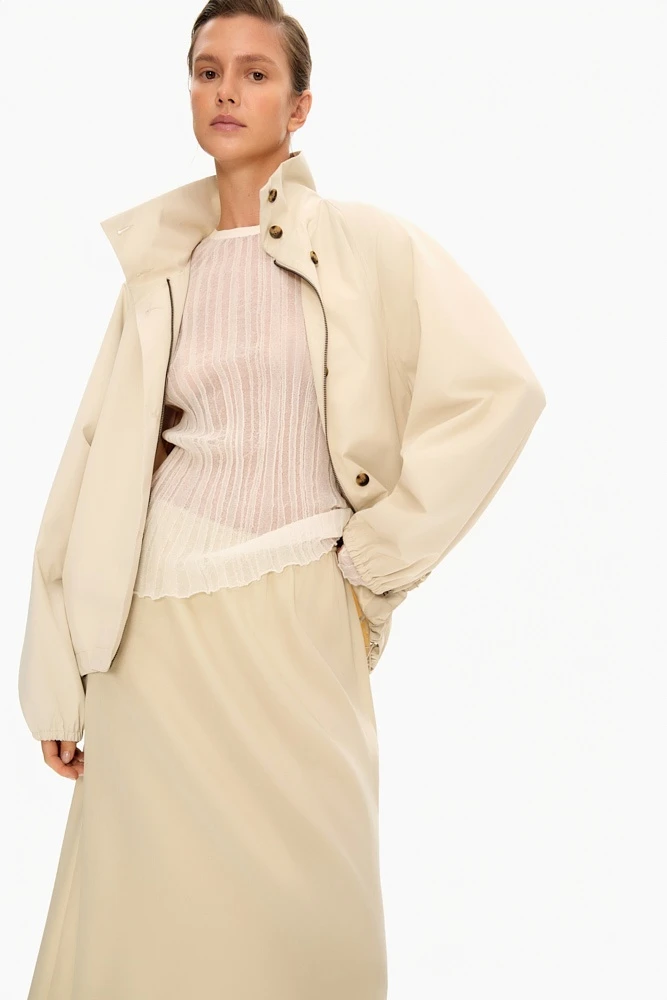 Нежный лонгслив из тонкого фактурного трикотажа — модель с ощущением лёгкости и воздуха. Полупрозрачная текстура создаёт деликатный визуальный эффект и добавляет образу глубину. Приталенный силуэт мягко подчёркивает фигуру. Лонгслив комфортно ощущается на теле благодаря высокому содержанию хлопка и отлично подходит для многослойных образов — как самостоятельный акцент или база под жакеты и кардиганы.