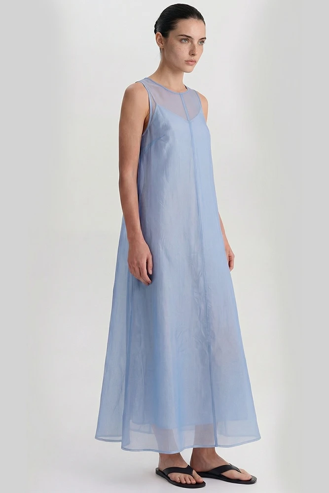 Минималистичное платье А-силуэта из легкой ткани создает эффектный образ для летних прогулок. Невесомое платье станет незаменимо в жаркий день и будет гармонично сочетаться с загорелой кожей.