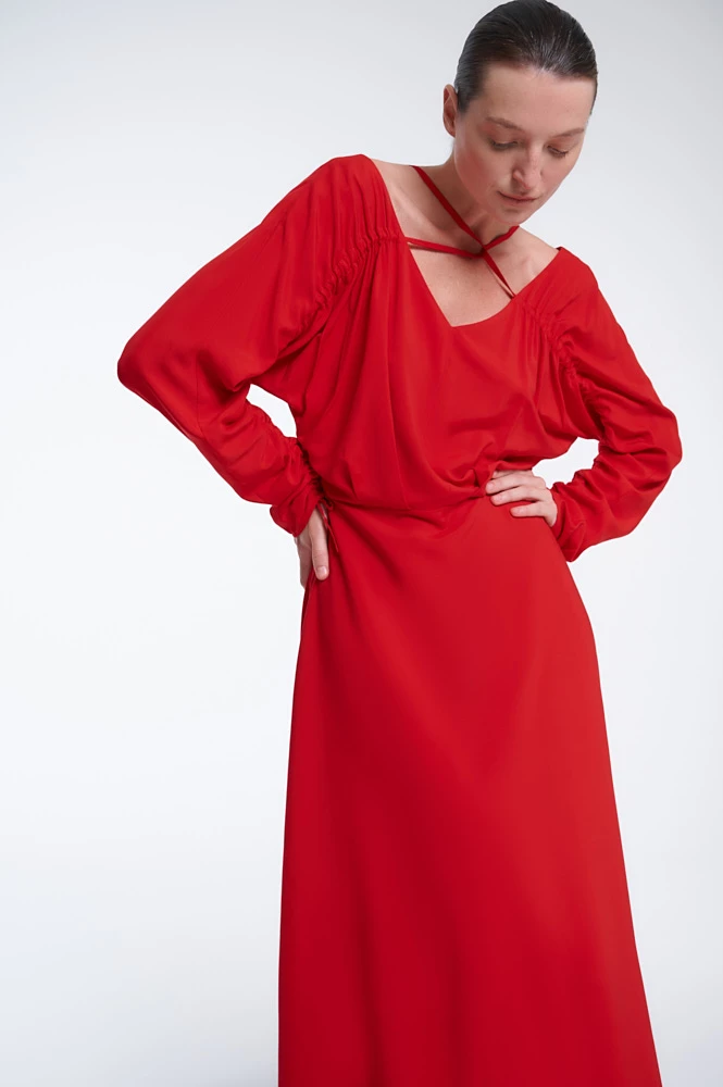 Платье миди с вырезом и тонкими бретелями