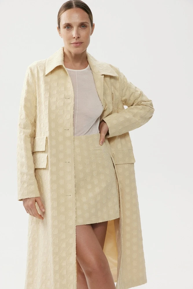 Тренч в ретро стиле А-силуэта. Классическое положение плеча и идеальная посадка по фигуре создают безупречный силуэт. Дизайнеры черпали вдохновение из весеннего показа GUCCI, что придает этому тренчу особую актуальность.