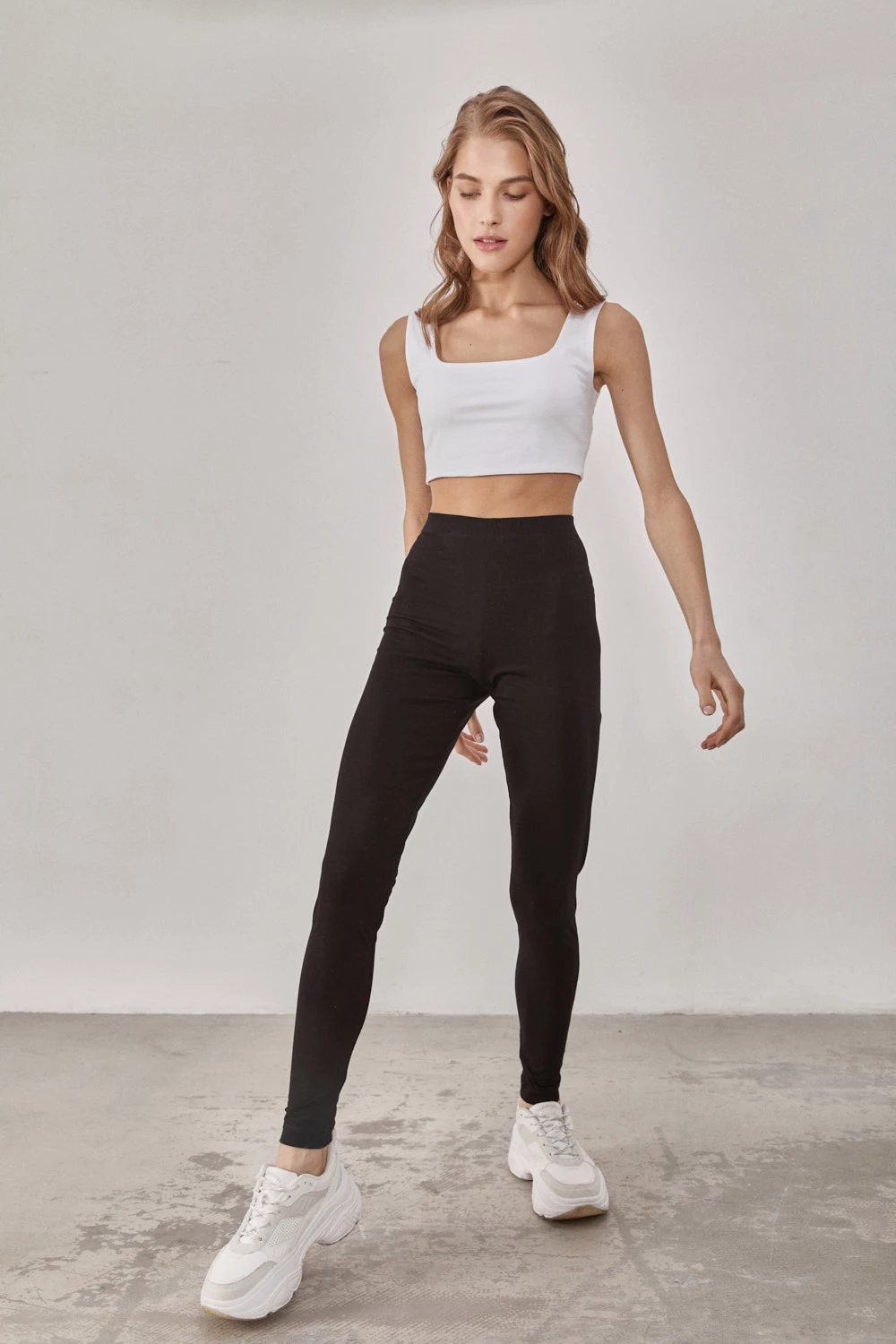 Женские рейтузы плотно облегающие ноги, посадка на линии талии, эластичная тесьма по поясу.