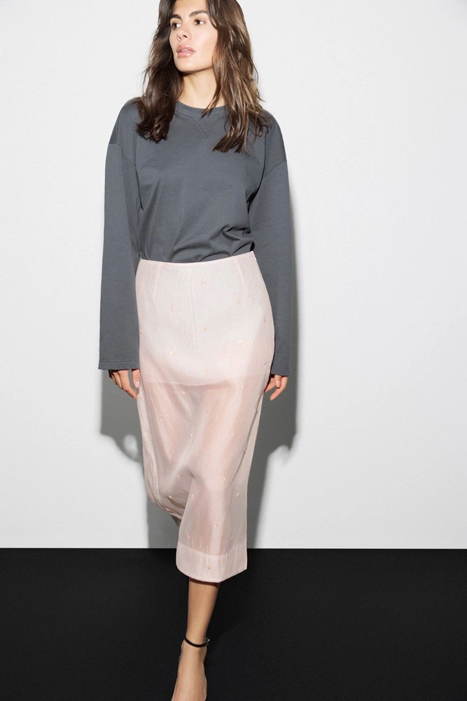 Лонгслив свободного кроя из мягкого трикотажа. Эта модель придется вам по душе, если вы любите универсальные образы, где комфорт стоит на первом месте. При этом лонгслив отлично сочетается с фактурными и более нарядными тканями, создавая необычный микс.