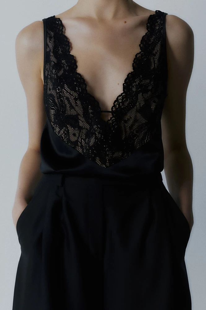 Топ в бельевом стиле с кружевом