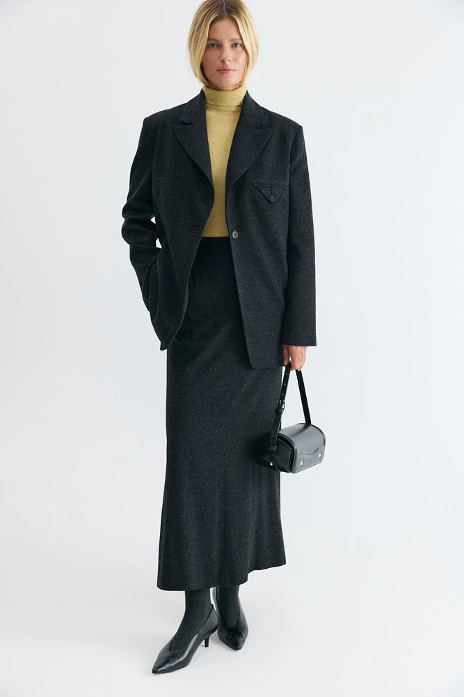 Юбка макси силуэта "годе" из костюмной вискозы. Это отличное сочетание классического брючного верха с гульфиком и женственных складок по длине юбки. Шлица по задней части делает ходьбу удобной.