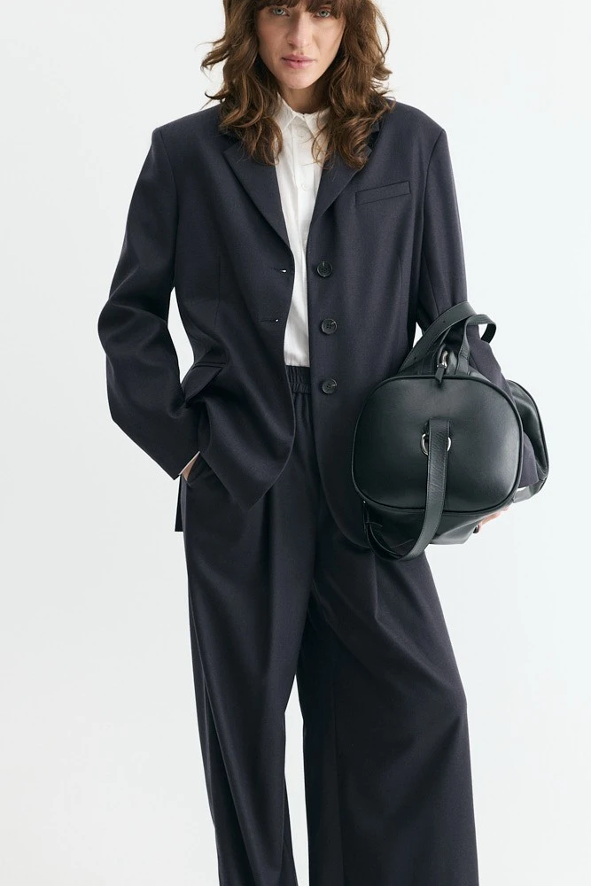 Пример идеального жакета - наша модель с расширенной линией плеча. Прямой силуэт и три пуговицы создают актуальный образ, отсылая нас к классическим моделям жакетов. Завершить комплект можно брюками, джинсами или строгой юбкой.