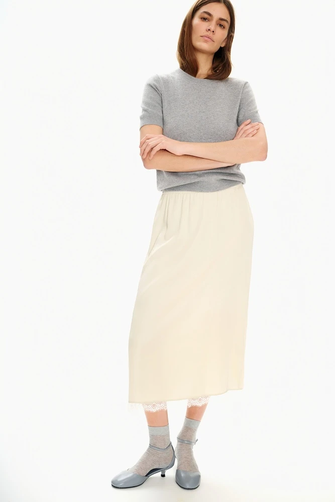 Юбка миди в бельевом стиле с кружевом