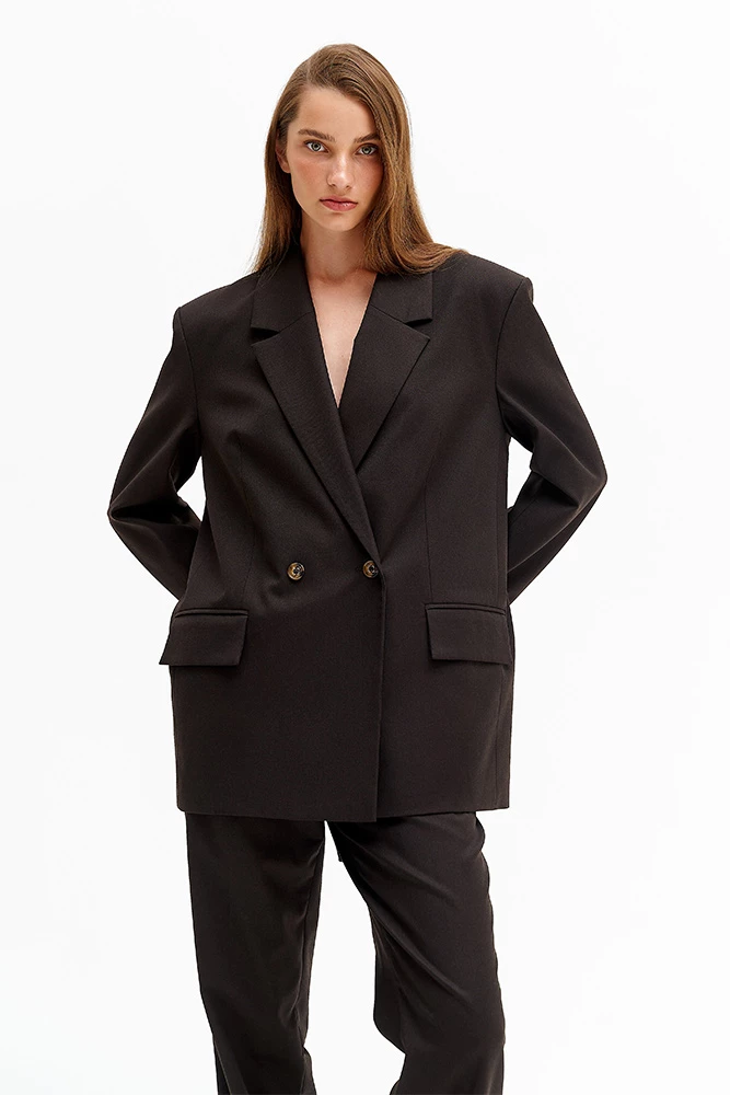 Жакет двубортный прямой с пряжками по спинке